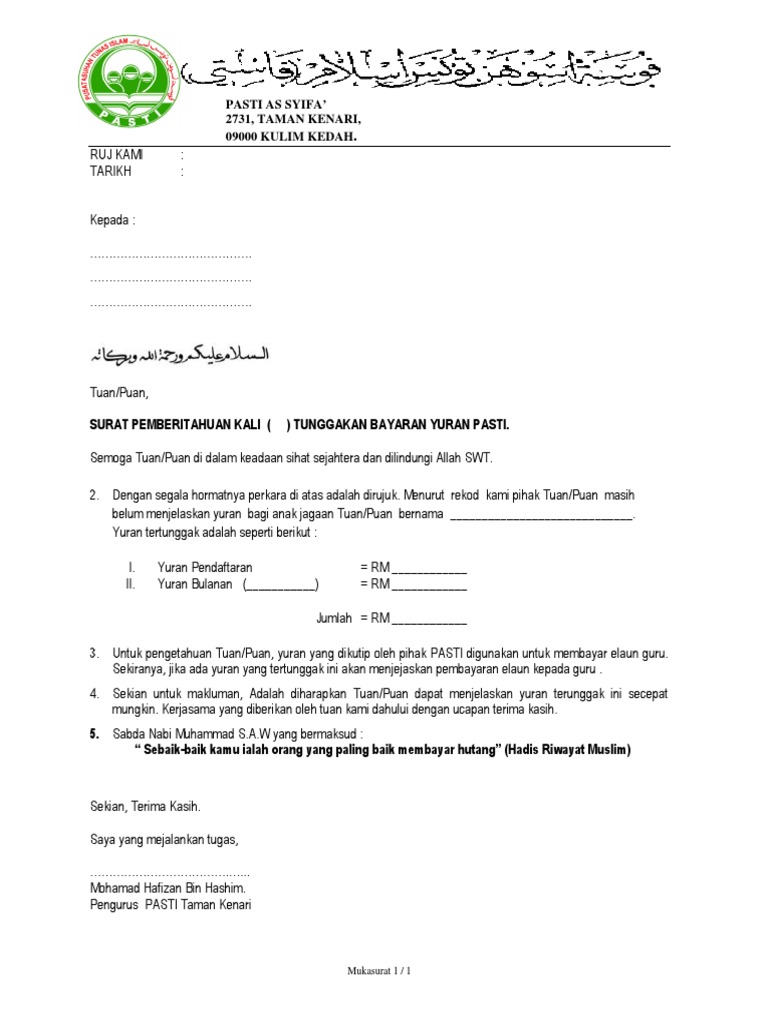 Contoh Surat Peringatan Bayaran Yuran Craftomaniacblog